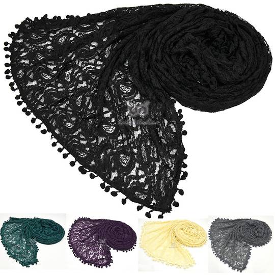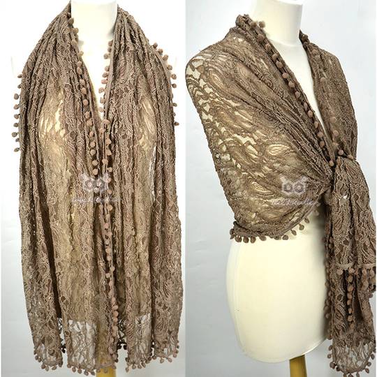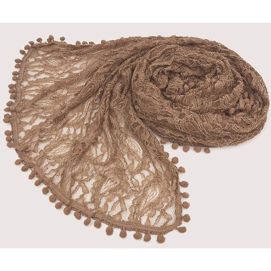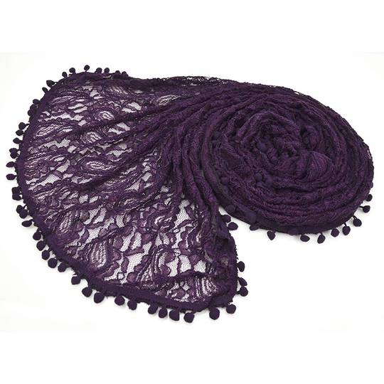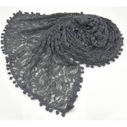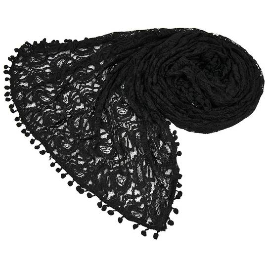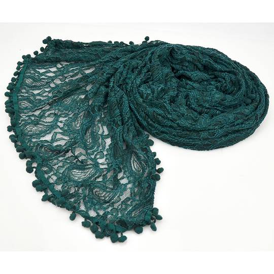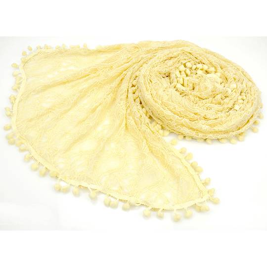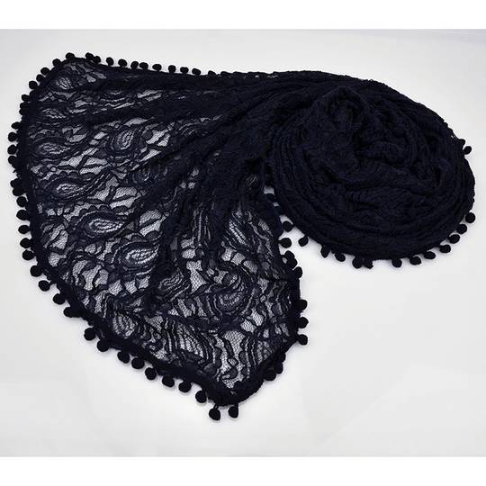 New Vintage Pompom Border Lace Jerse Scarf